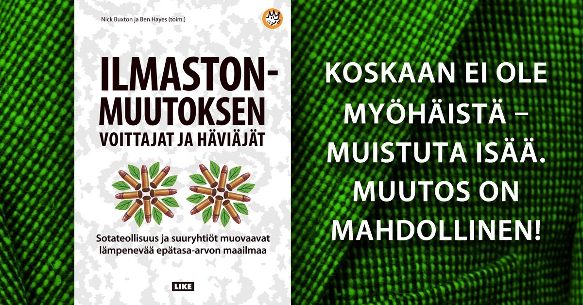 Rauhanpuolustajat ehdottaa isälle mahtavaa kirjalahjaa! Juuri ilmestynyt Nick Buxtonin ja Ben Hayesin toimittama Ilmastonmuutoksen voittajat ja häviäjät – Sotateollisuus ja suuryhtiöt muovaavat lämpenevää epätasa-arvon maailmaa isänpäivätarjouksena rajoitetun ajan 31.10.–13.11.2016.