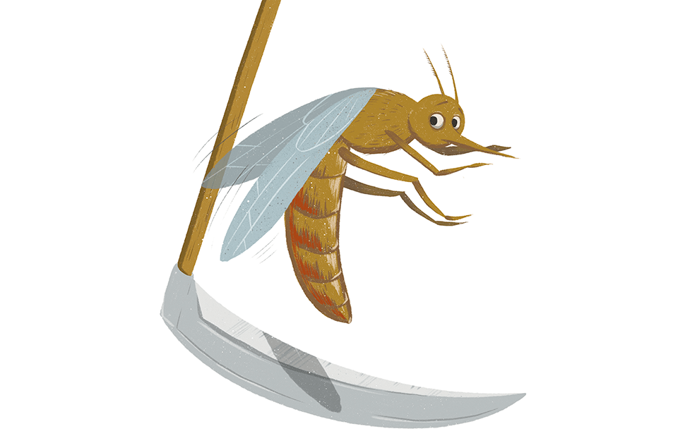 En ole viikatteeni kanssa niityllä yksin. Kanssani ovat hyttyset, jotka haluavat osansa minusta.