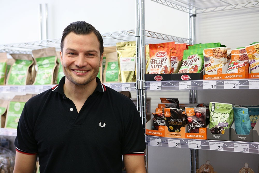 Vegekaupan tiskin takana tervehtii iloisesti Karry Hedberg. Hän perusti kaupan Helsinkiin Vaasankadulle kesällä 2015. Vegekauppa toimii myös Turussa, Tampereella ja netissä.