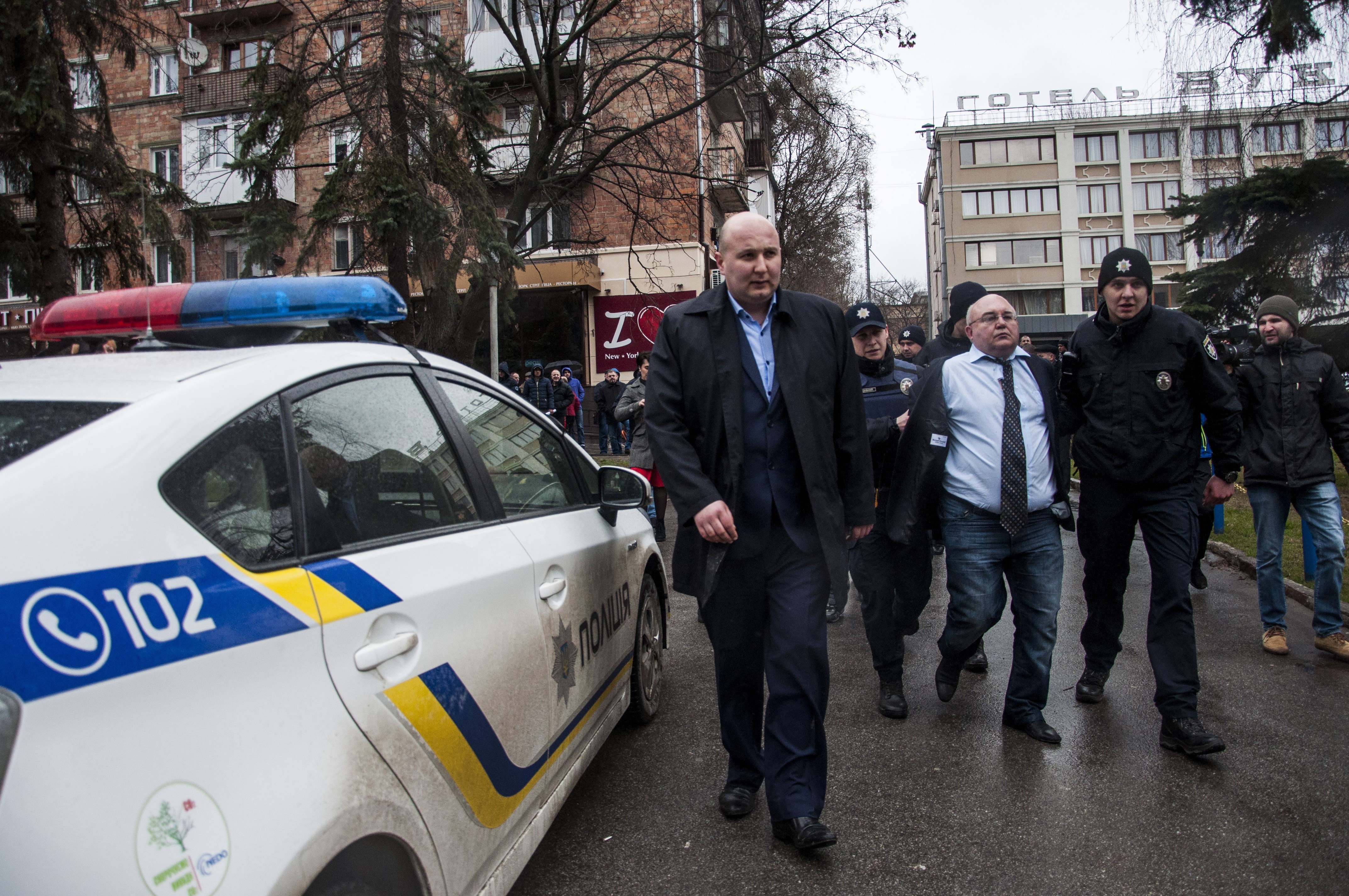 Yksi etnisten vähemmistöjen tilannetta käsittelevän konferenssin keskeyttäneeseen hyökkäykseen osallistuneiden johtohahmoista on tunnistettu Jevgenyi Marusikiksi. Marusik (sotanimeltään Lyijykynä) on vapaaehtoisen Aydar-pataljoonan entinen taistelija. Vuonna 2014 hän haavoittui taistelussa Luhanskissa. Virallisten tietojen mukaan hän haavoittui taistelutilanteessa, mutta väitetään myös, että hän sai vammansa varomattoman aseenkäsittelyn seurauksena. Häntä hoidettiin Unkarin valtion kustannuksella Budapestin sotilassairaalassa.