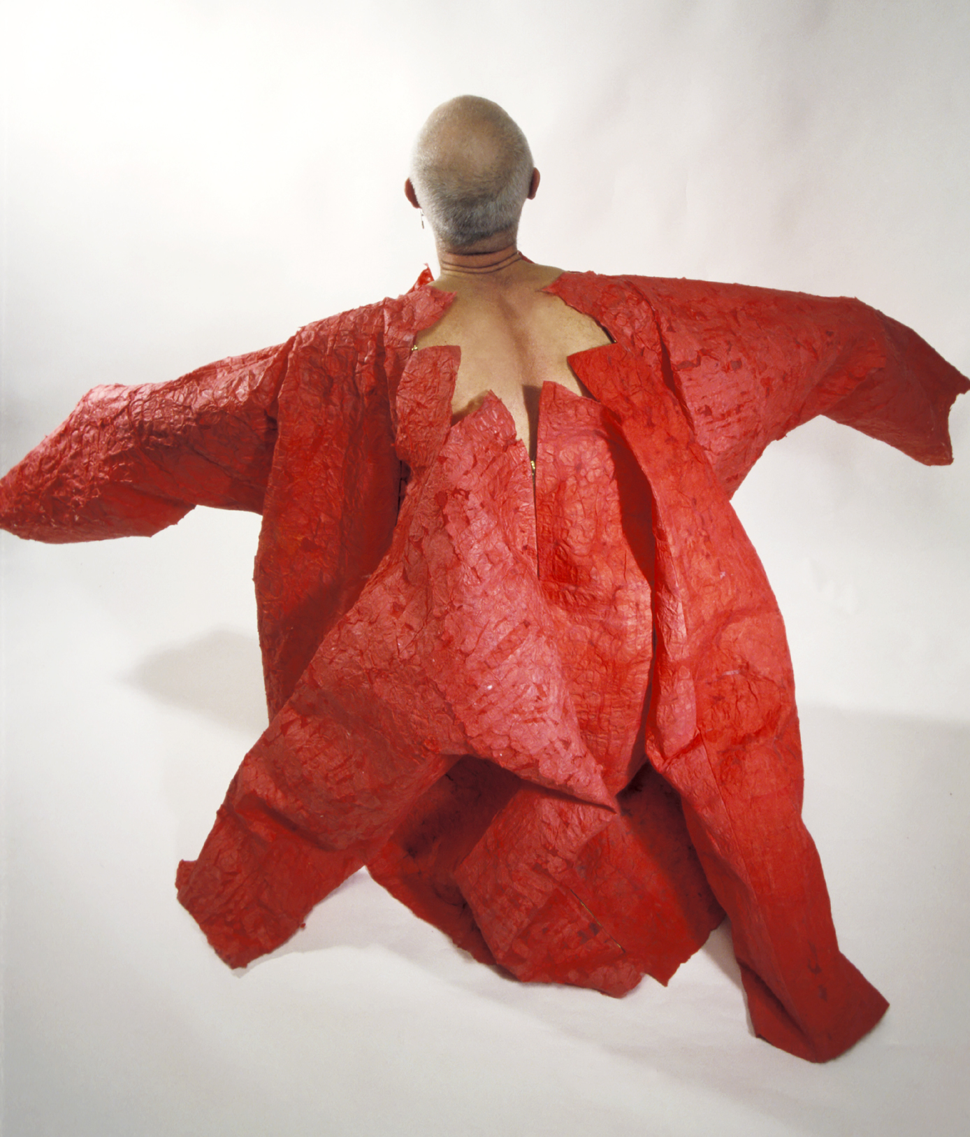 Pääkuva: Punatähti. Sekatekniikka, paperipainanta, ompelu. Materiaalina käsin tehty puuvillapaperi punaisista Tšekkoslovakian armeijan alushousuista vuosilta 1970/80, sideharsokangasta. 2003.