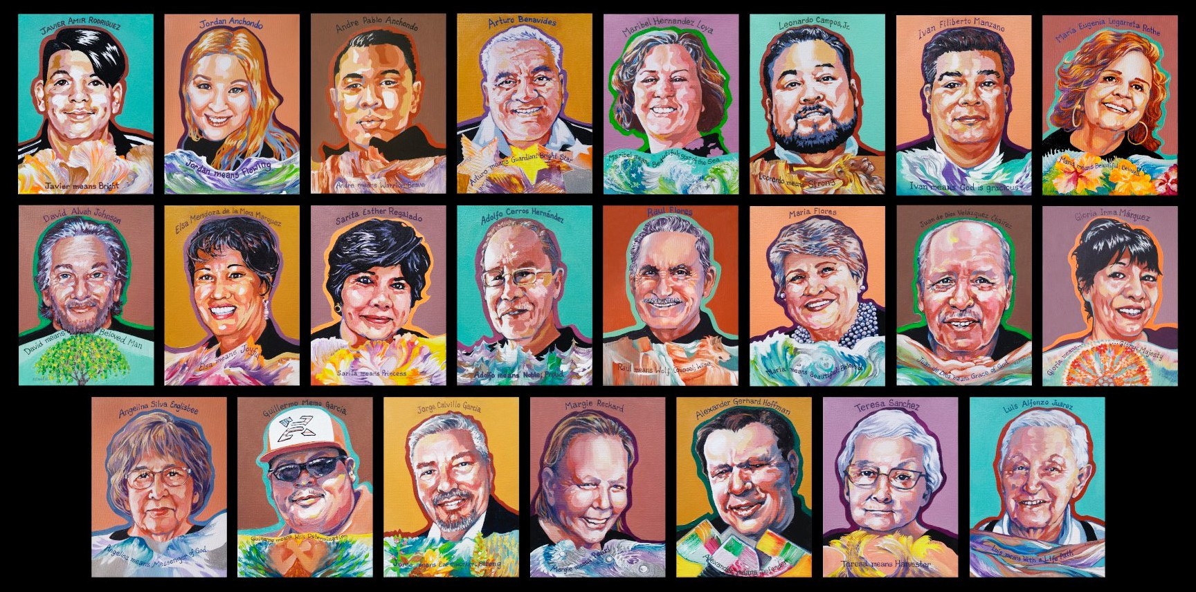 Ellen Elmes piirsi Teksasin El Pasossa 3.8.2019 kuolleiden uhrien kasvot, jottei väkivaltaisen tragedian inhimillinen hinta unohtuisi. Lähde: César Chávez Institute.