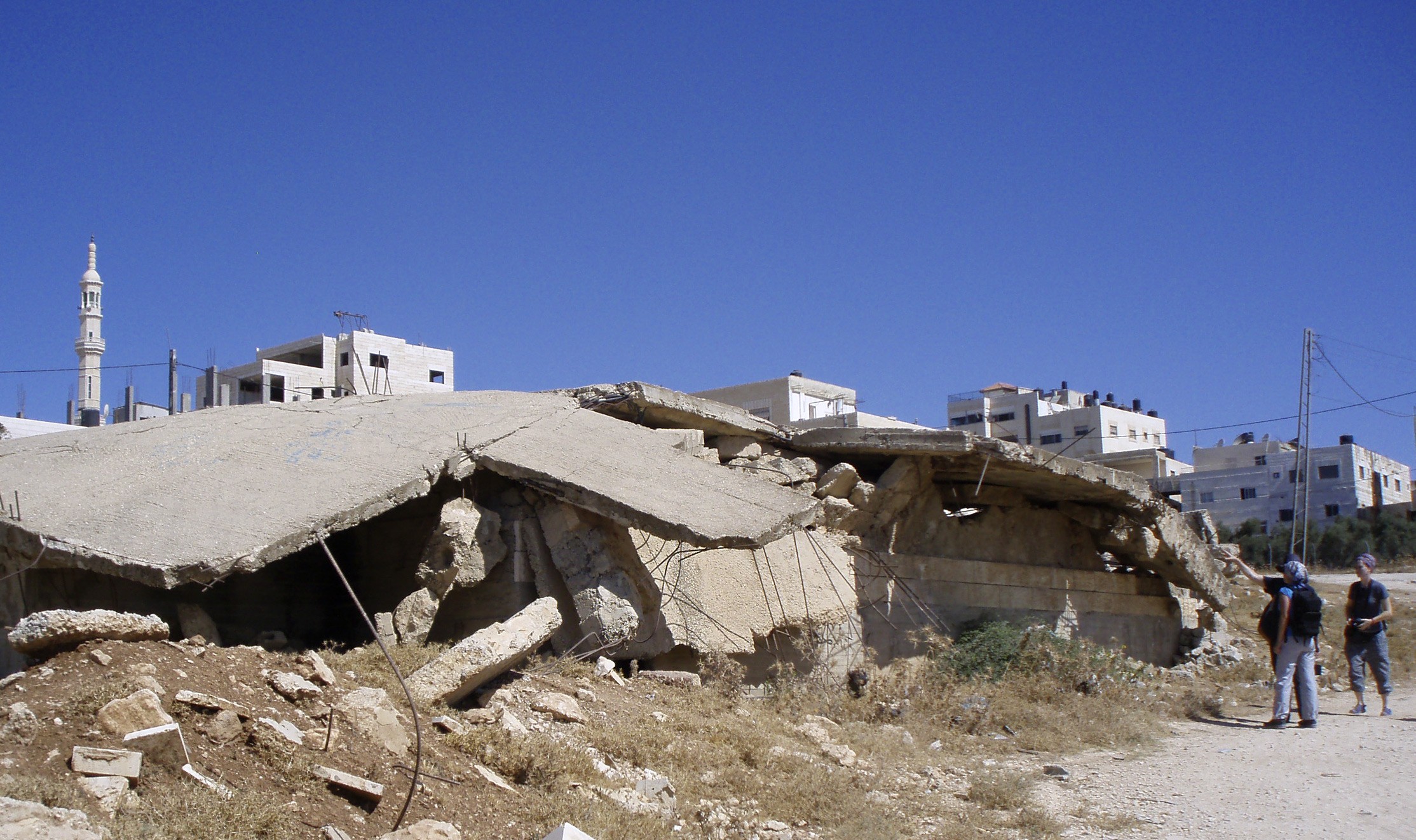 Israelin miehityshallinto käyttää erilaisia tekosyitä palestiinalaisen infrastruktuurin tuhoamiselle. Israel ei myönnä palestiinalaisille rakennuslupia, joten palestiinalaiset rakentavat omille mailleen ilman lupaa taloja, joita Israel sitten väittää laittomiksi.
