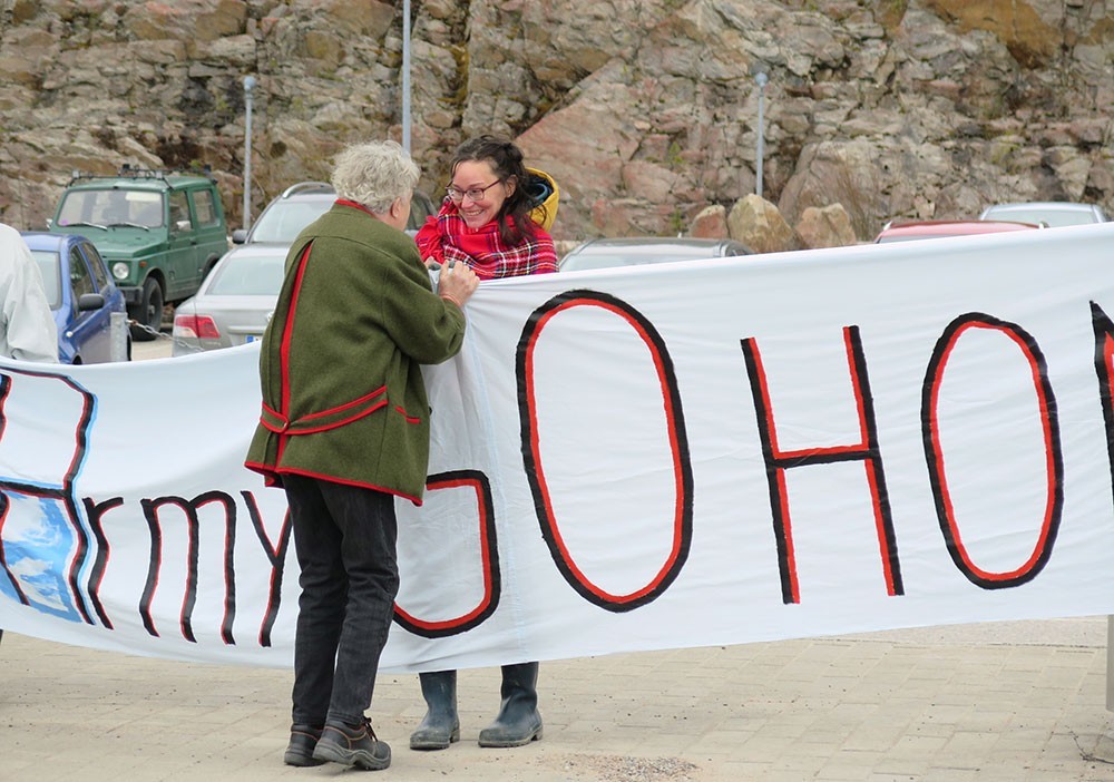 Pidämme sotavarustelua ja ACE17-harjoituksia kritisoivia puheita ”avoimen mikin” periaatteella. Välillä laulamme ruotsiksi, englanniksi tai suomeksi. Paikalla on jonkin verran lehdistöä. Tunnistan Ylen toimittajan ja valokuvaajan sekä eilen tapaamani Sisuradion toimittajan. Laulumme taukoaa taivaalla jyrisevän sotilaskoneen melun ajaksi.
